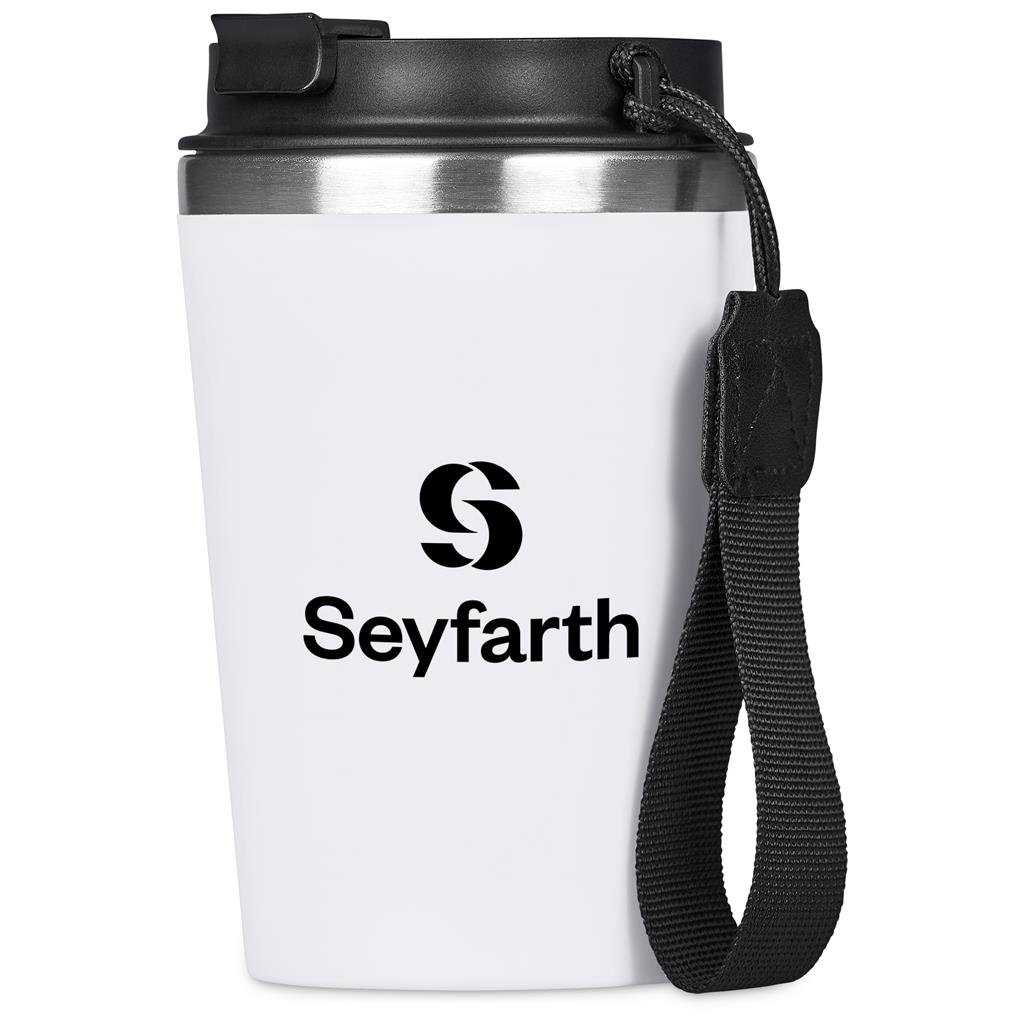 taking your hot beverage with you gets better and better with this double-wall reusable coffee tumbler. It has a matte plastic outer wall, with a food grade stainless steel inner, to keep your drinks hotter for longer. The secure screw-on lid has a drinking port with a cap which can be closed when you’re on the move, and popped open when you wish to sip from it. the finger loop helps to keep the rest of your hand free for carrying other things, like your phone. The loop can be removed should you prefer to use the tumbler without it.