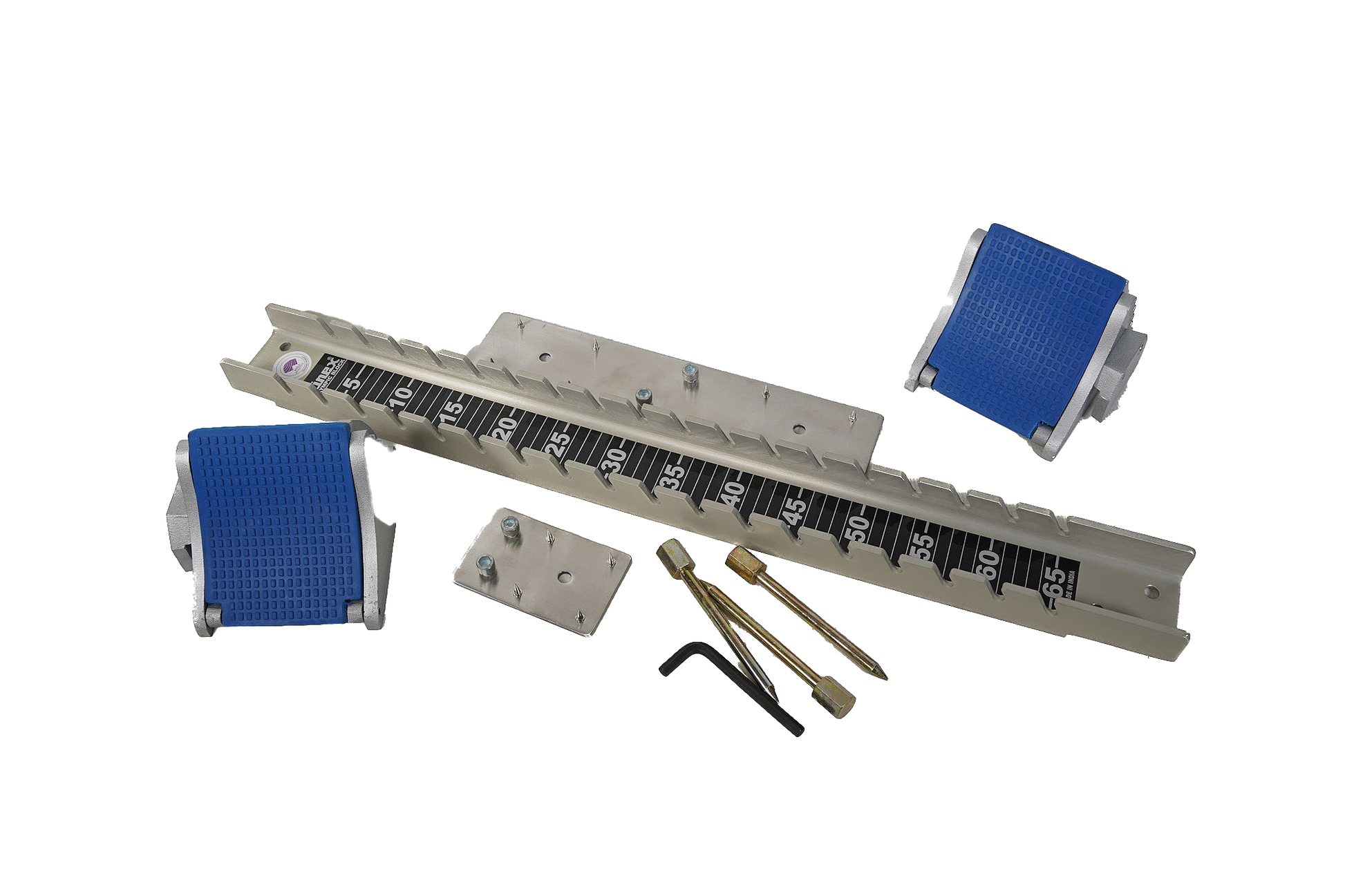 Made of double square steel tubes, M. S. steel paddles with PVC pads, both ends with spikes suitable for synthetic tracks.